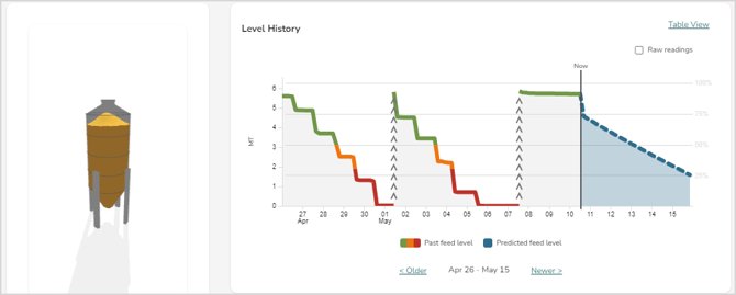 - The Level History graph also displays refills using upward arrows. Hover over any reading to get the date/time and amount.