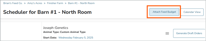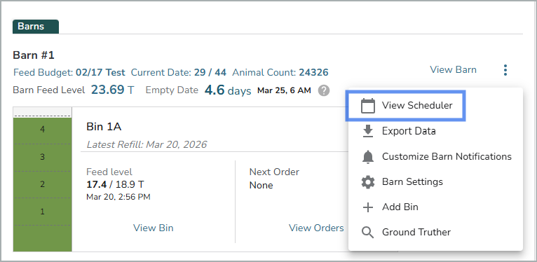 - Once you find the Barn location, use the "View Scheduler" link to view the Feed Budget Calendar for that Barn